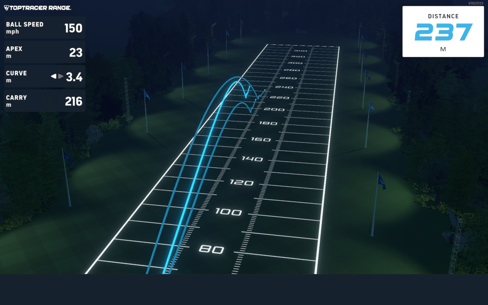Alle 50 Abschlagsplätze auf zwei Ebenen verfügen neben hochwertigen dämpfenden Matten über einen Toptracer-Monitor mit Touchscreen. Das System verfolgt nach Aktivierung jeden geschlagenen Ball per Kamera und zeigt die Daten übersichtlich auf dem jeweiligen Monitor an.
