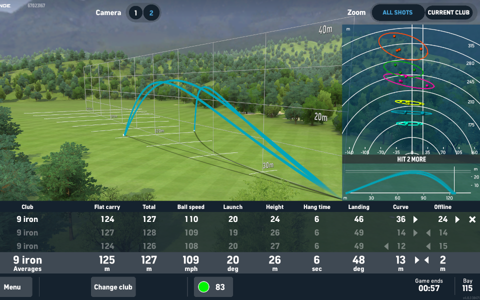 Lassen Sie sich Länge, Ballgeschwindigkeit, Abfluginkel und einiges mehr direkt auf dem Monitor anzeigen.