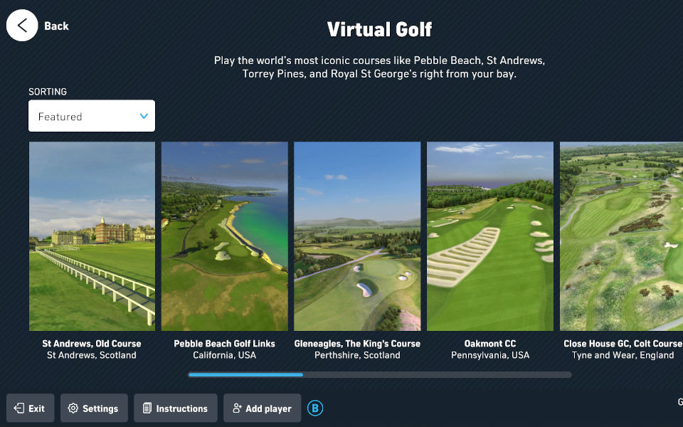 Spielen Sie auf der Driving Range die bekanntesten Golfplätze wie St Andrews, Pebble Beach oder PGA National.